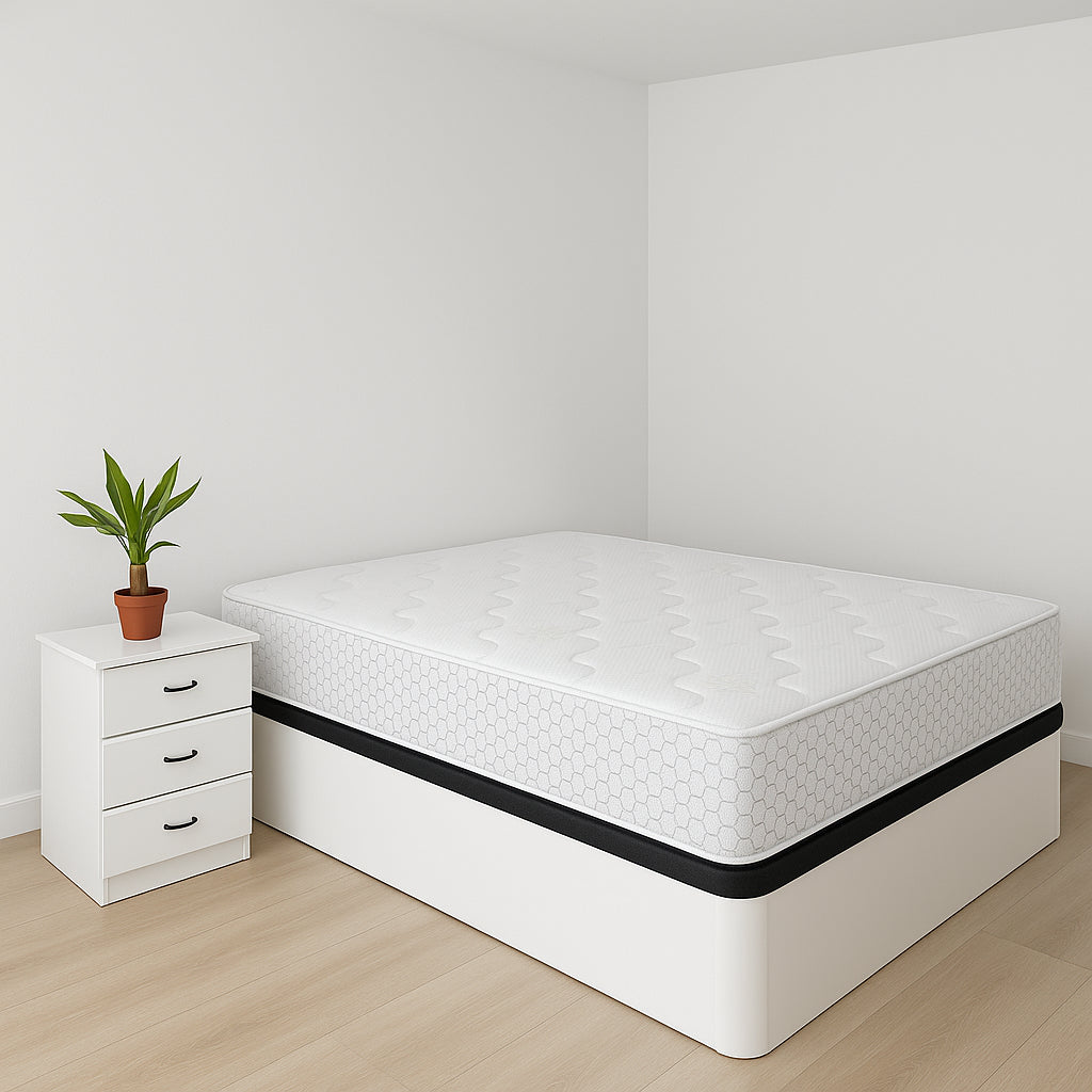 Dispone de un núcleo HR de alta calidad para garantizar durabilidad y resistencia, junto con 4 cm de viscoelástica (2 cm en cada cara) que se adaptan a la silueta del cuerpo, reduciendo los puntos de presión.